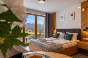 Apartament Magic Moments Polana w Kościelisku to elegancka, jednopokojowa przestrzeń stworzona z myślą o wyjątkowym wypoczynku w otoczeniu Tatr. Starannie zaprojektowane wnętrze łączy komfort, estetykę i kameralną atmosferę, tworząc idealne warunki do relaksu.