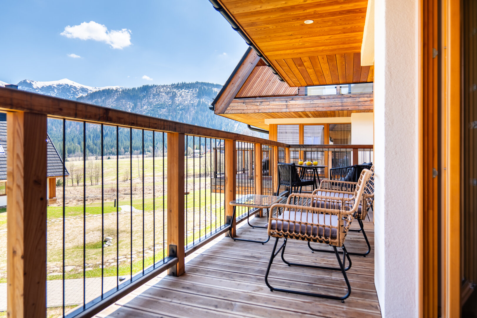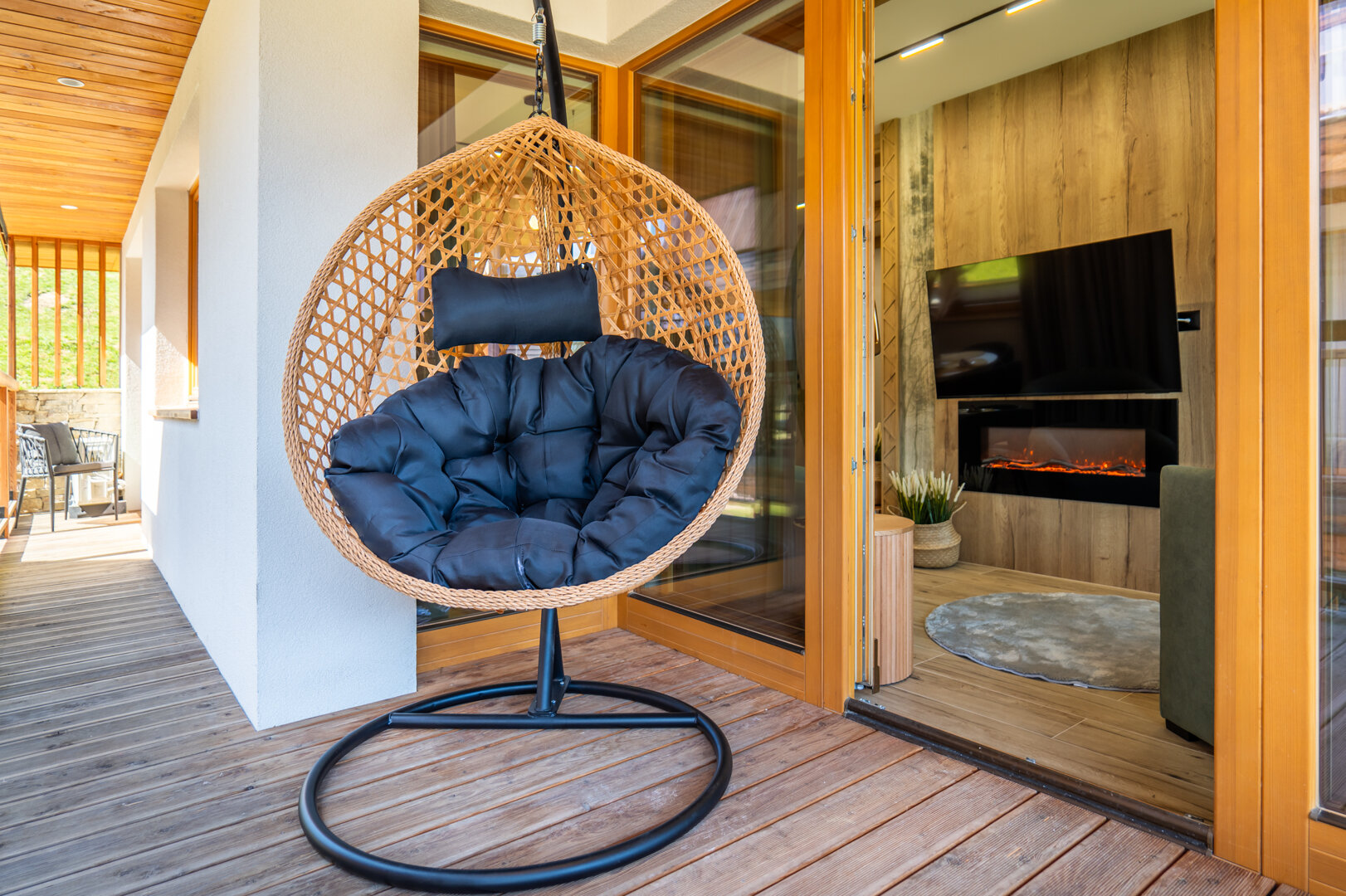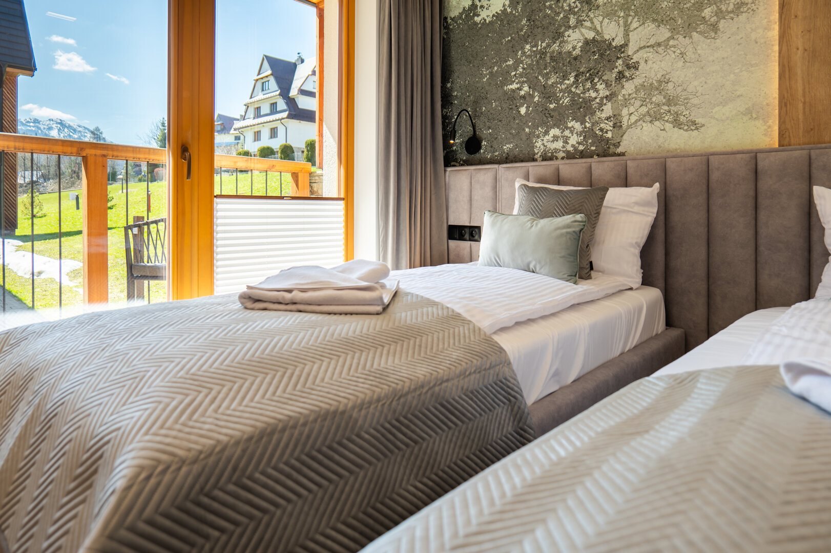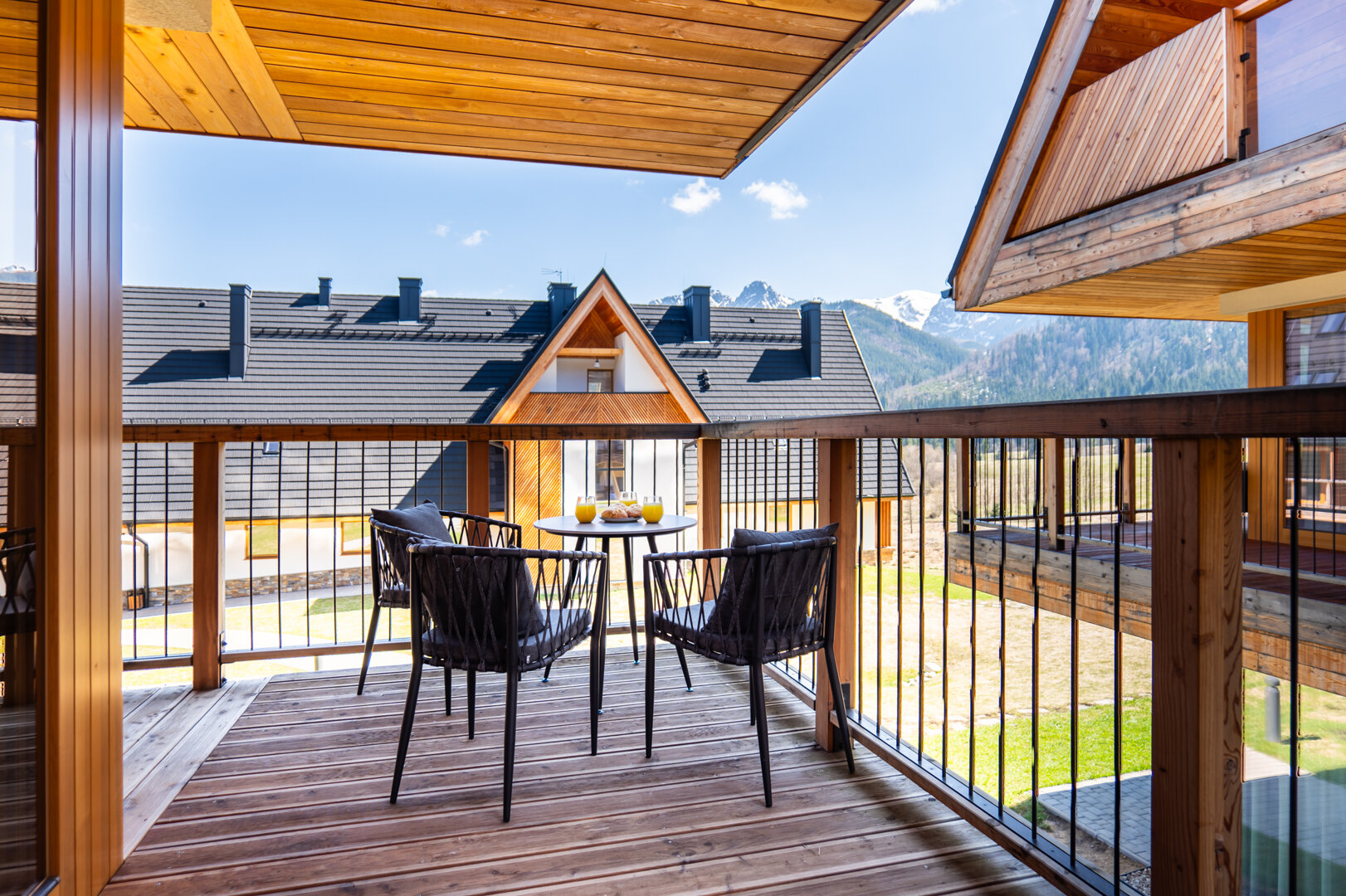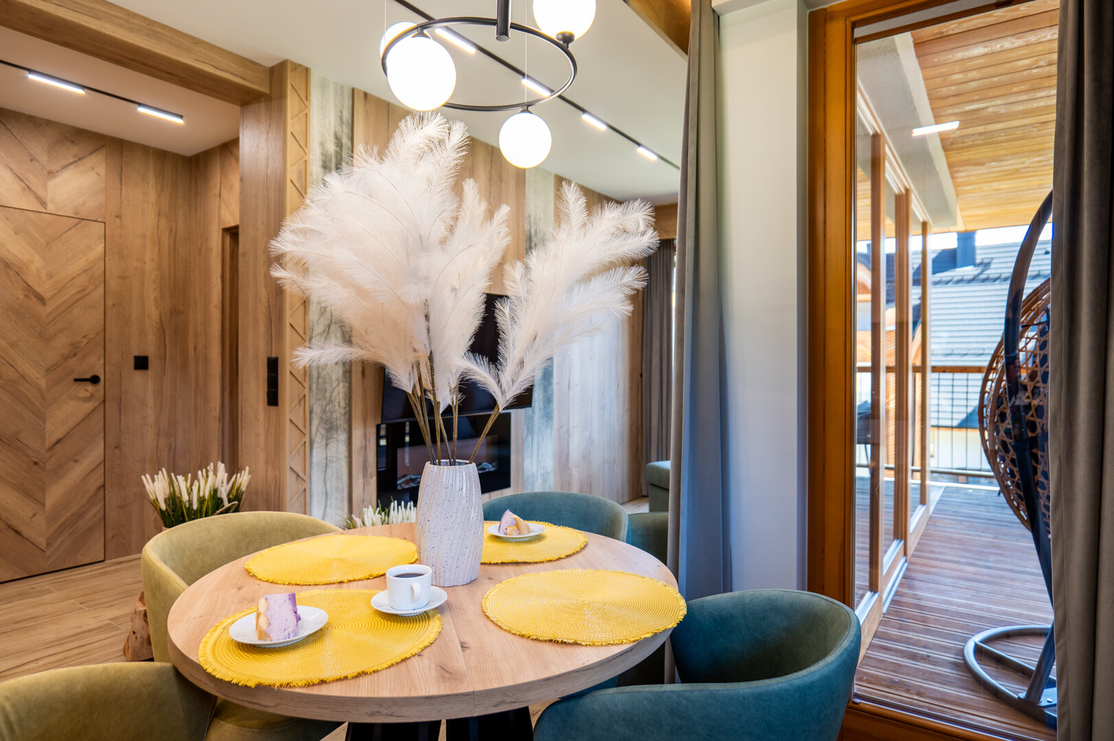 Wyjątkowym atutem apartamentu jest prywatny taras, z którego rozpościera się zachwycający widok na Giewont i otaczające szczyty. To idealne miejsce na poranną kawę, chwilę wyciszenia lub nastrojowy wieczór przy lampce wina.
