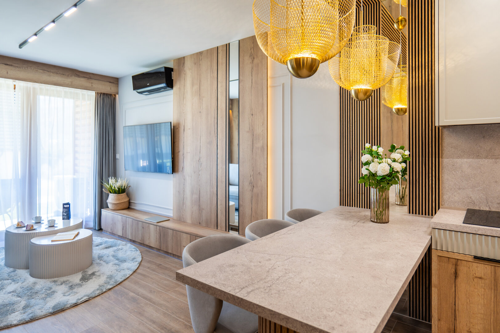 Jasne, przestronne wnętrza, naturalne światło i starannie dobrane dodatki tworzą harmonijną przestrzeń, w której można naprawdę odpocząć i złapać oddech od codzienności.