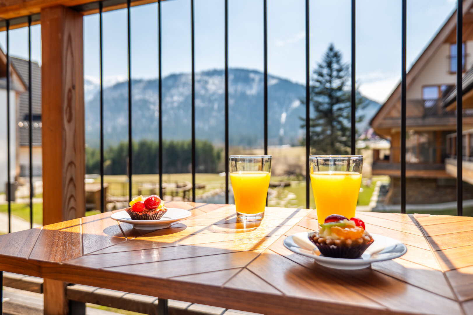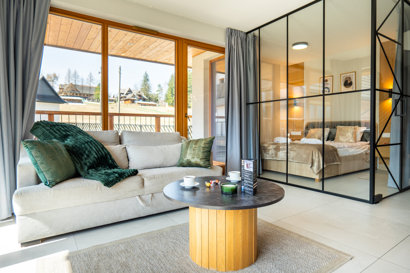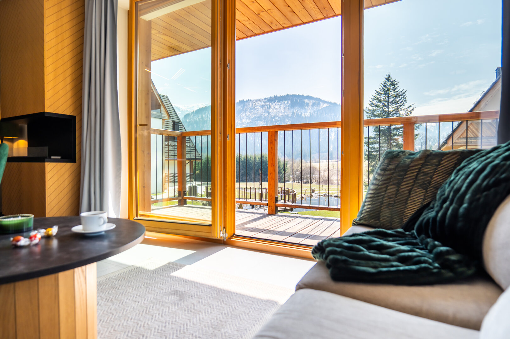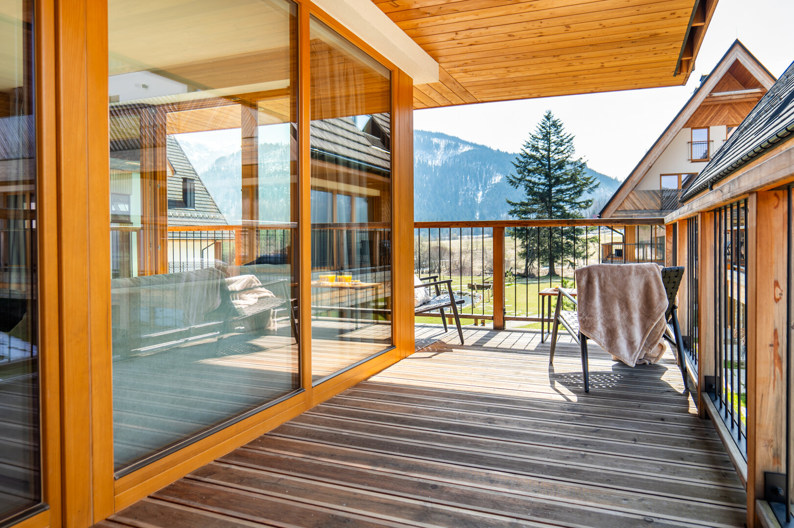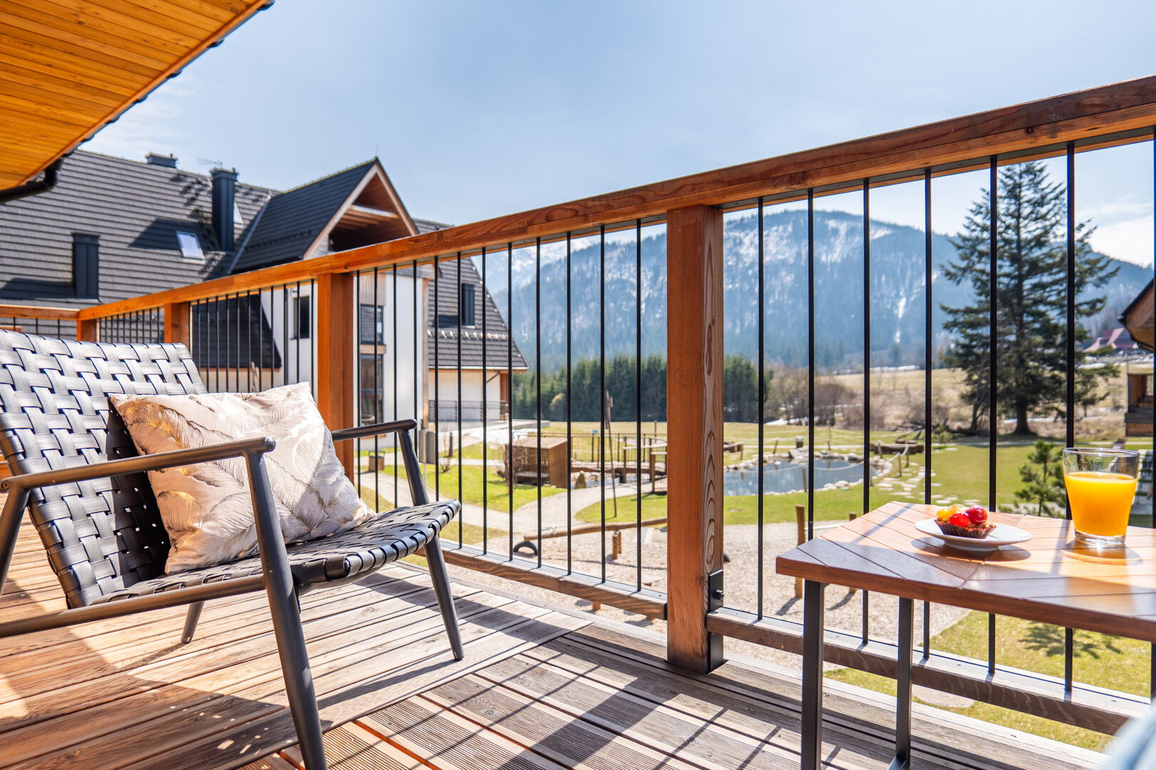 Niewątpliwym atutem jest taras z widokiem na góry – idealne miejsce na poranną kawę, chwilę relaksu lub wieczorny odpoczynek przy zachodzie słońca.