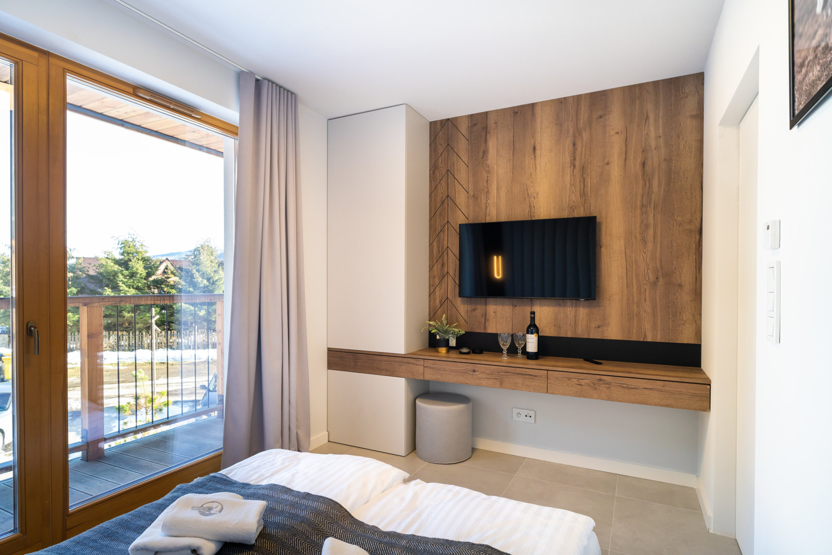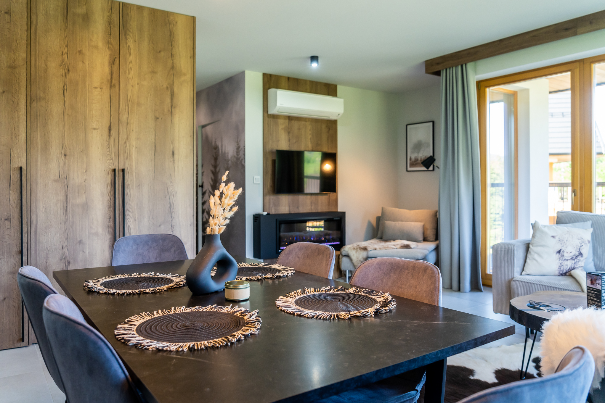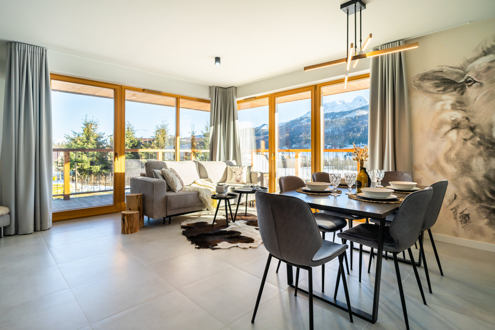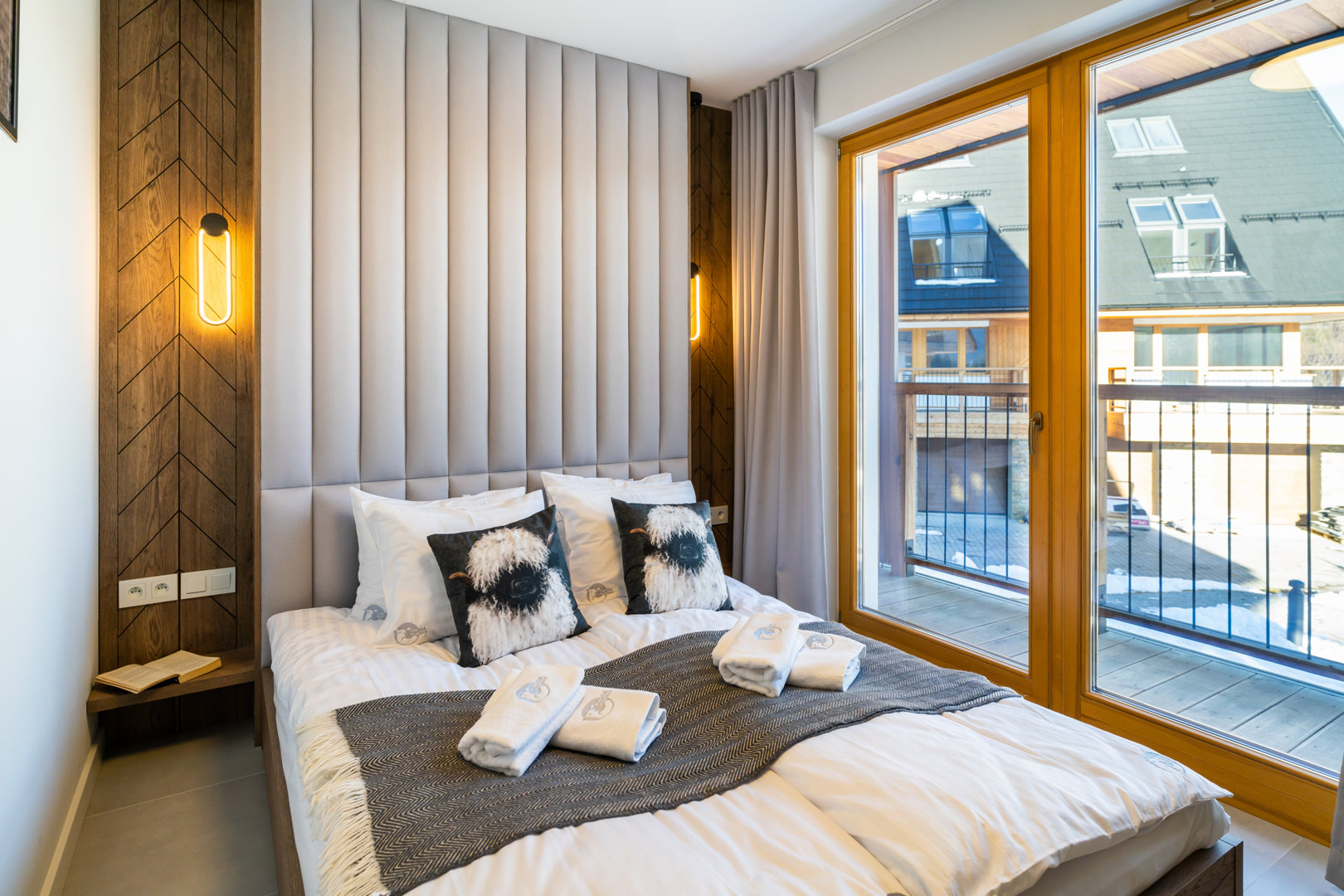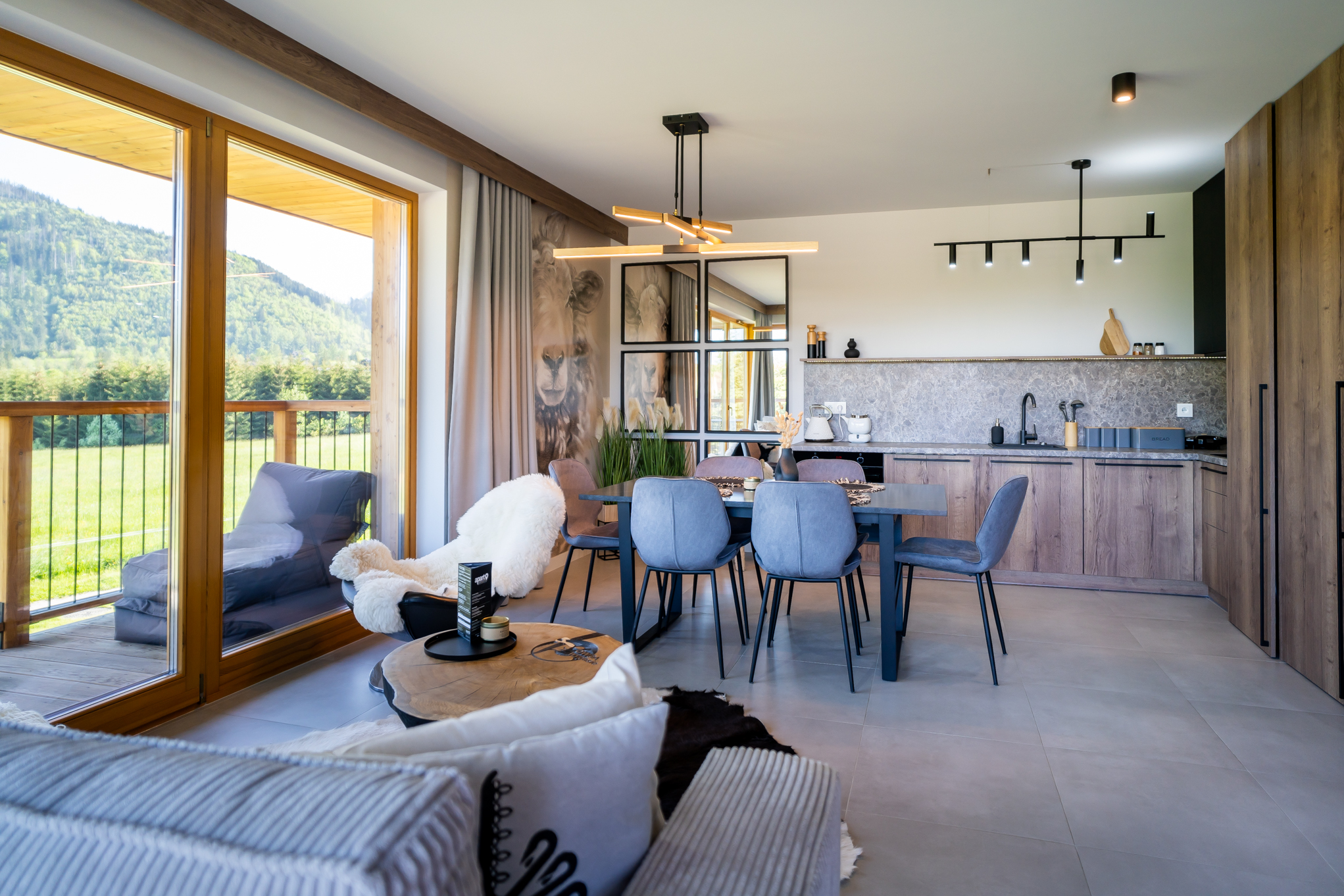 Sheep's Grazing Apartment is a beautiful place located in the heart of Kościelisko. Elegant and spacious interiors impress with their unique atmosphere and details. In addition, the unbelievable view of the entire Panorama of the Tatra Mountains and a sunny terrace are conducive to relaxation away from the hustle and bustle of the city. Ideal for 2 - 4 people, both couples, families with children, as well as a group of friends. The flat is fully equipped with a washing machine, dishwasher, oven, garden furniture and many other amenities to make you feel at home. The proximity of hiking trails, cross-country skiing trails, walking trails, ski lifts, Chocholowskie thermal baths and many other attractions. The flat comes with a free parking space and free WiFi access.